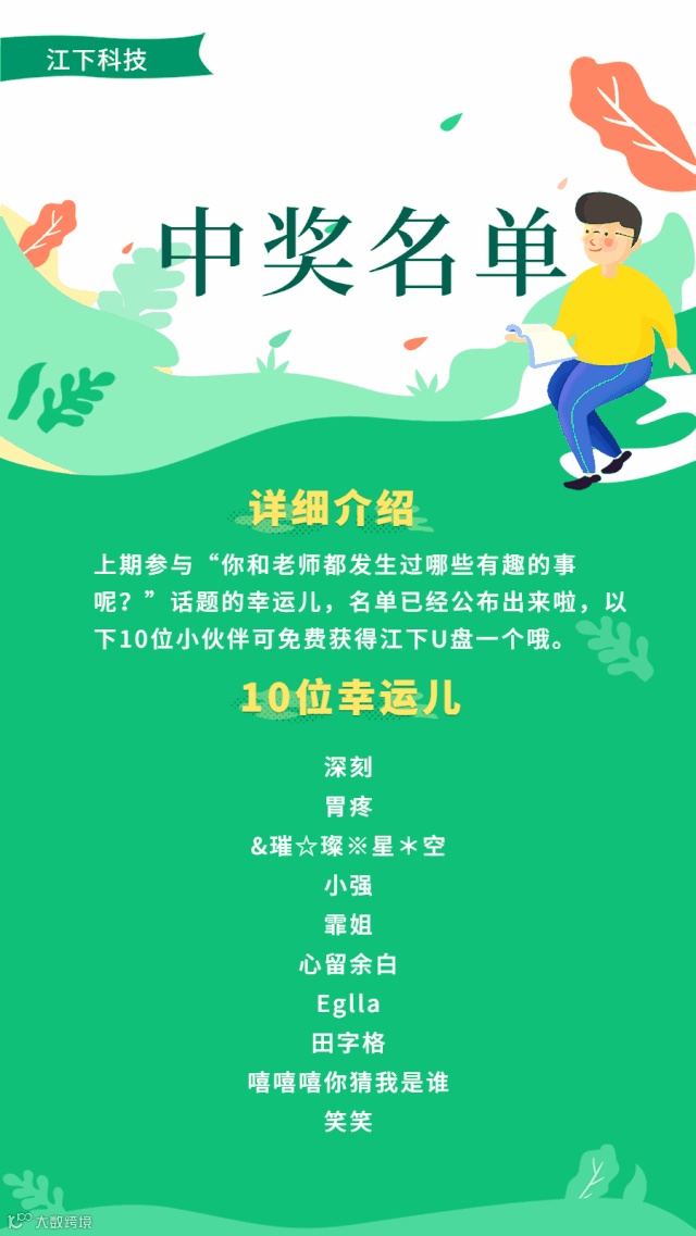 导读:恭喜以上十位幸运儿我们的U盘正在备货中请留意微信公众号推送的信息尽快填写收货信息我们会尽快安排发货哦