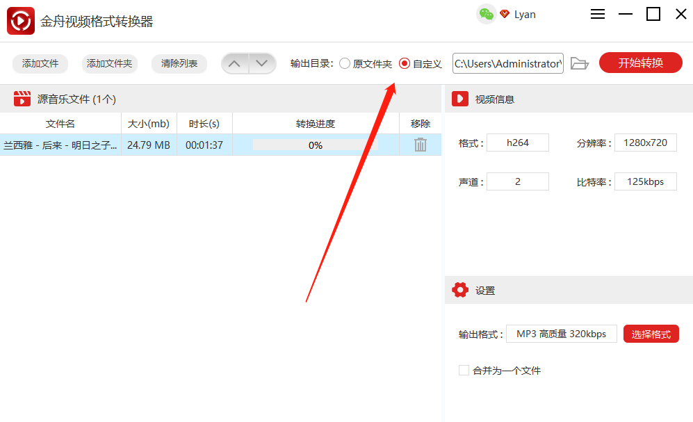 第四步、本软件所默认的文件保存位置为原文件夹,如果需要更换,可勾选软件上方“输出目录”中的“自定义”按钮,然后再选择新的保存位置。