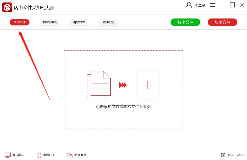 第二步、如图所示,点击软件左上方的“添加文件”,将需要加密/解密的文件上传到软件上。