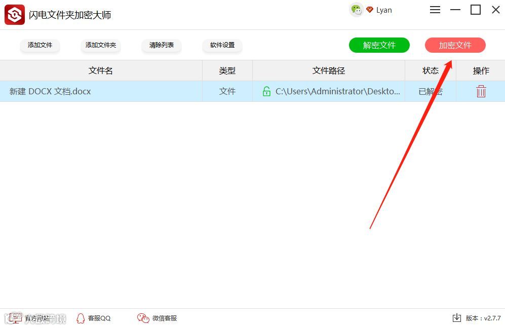 第五步、设置成功后,点击软件右上方的“加密文件”。