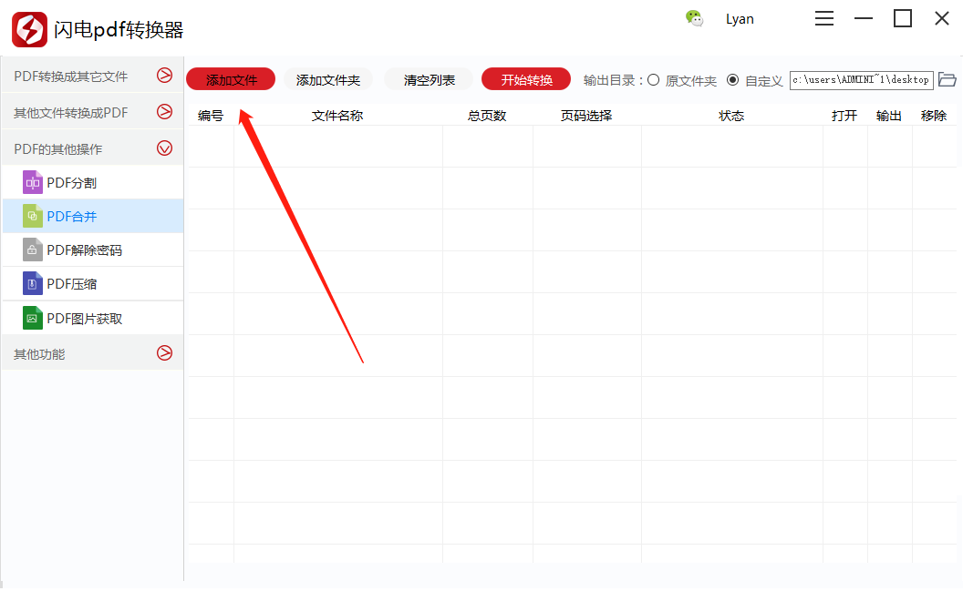 第三步、然后在“合并文件”页面中选择”添加文件“。