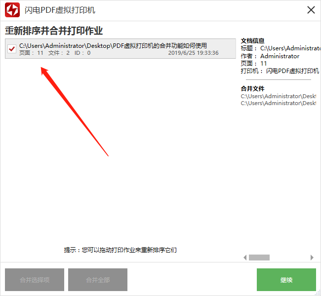 第五步、下图可以清楚的看到,文件已经合并好了,我们接下来点击“继续”。