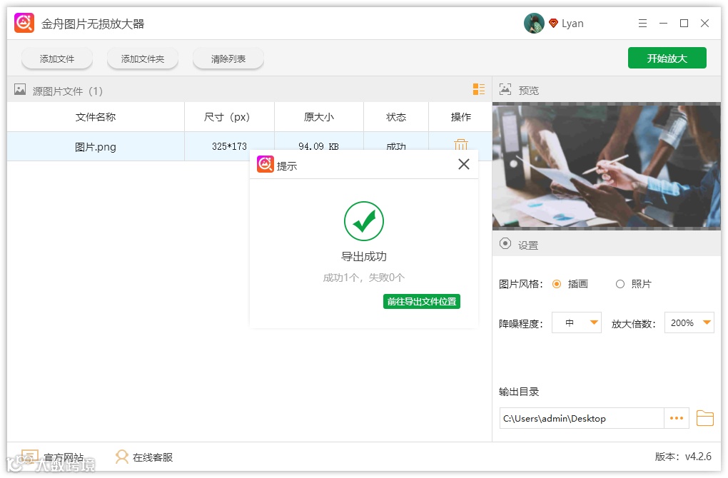 第五步、得到以下提示,说明图片放大并成功导出,点击前往导出文件位置浏览就可以了