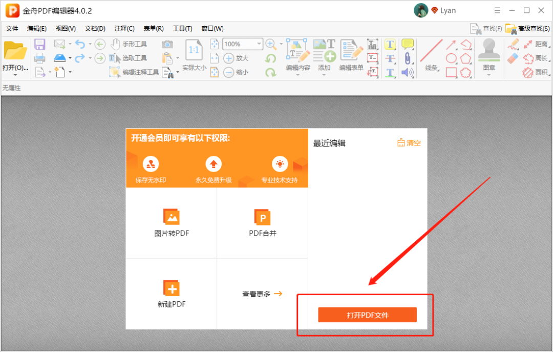 如果需要对原有的PDF进行二次编辑,可点击“打开PDF文件”选择文档进行编辑;