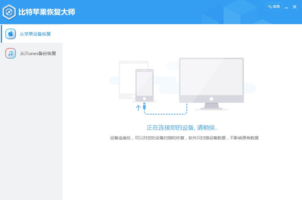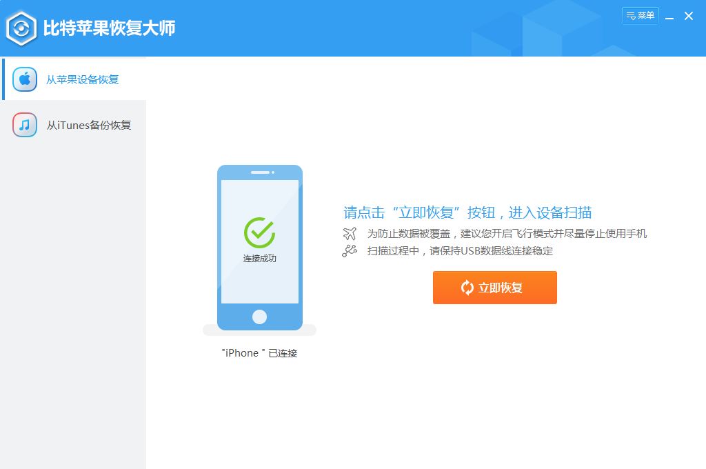比特苹果恢复大师是一款能快速恢复手机数据、操作极简、并且完美兼容全线IOS系统的手机恢复软件。支持恢复基本数据、App数据、其他数据等多种数据类型,让您一款软件在手,满足您的多种需求。