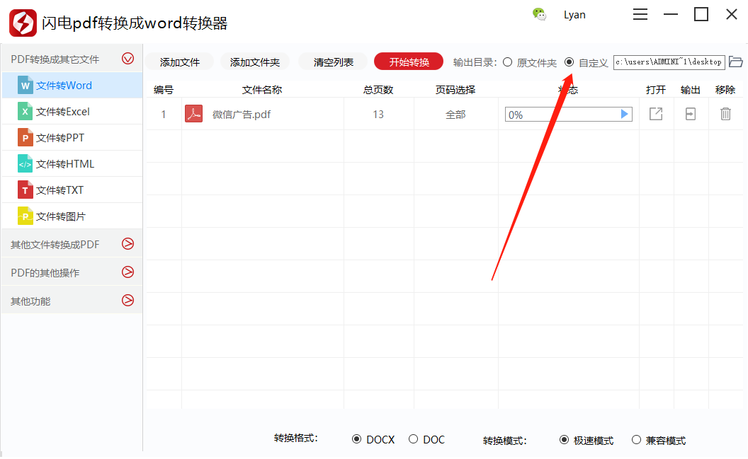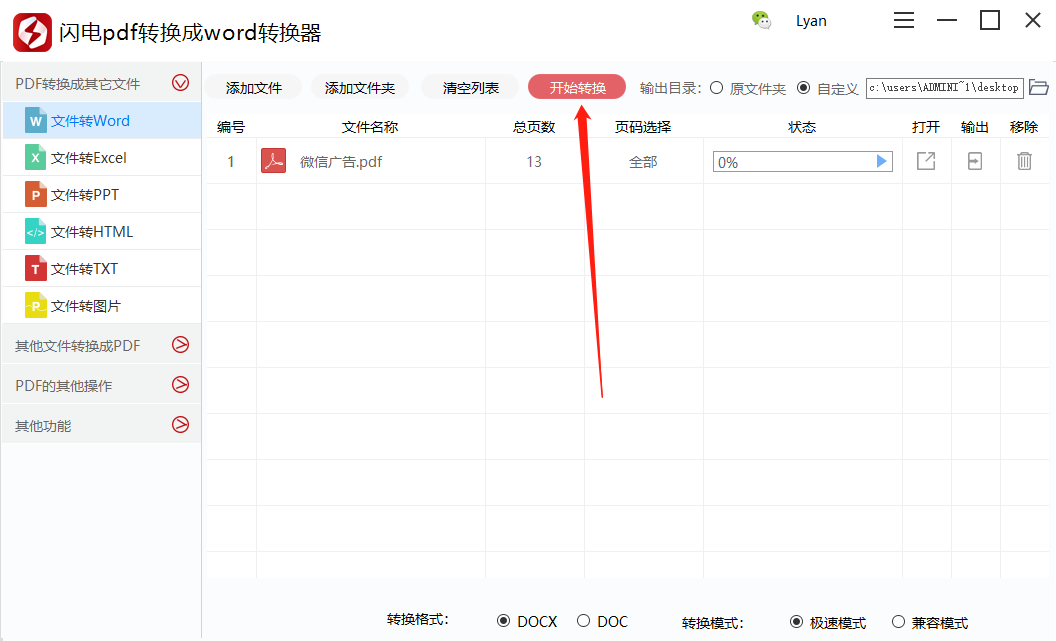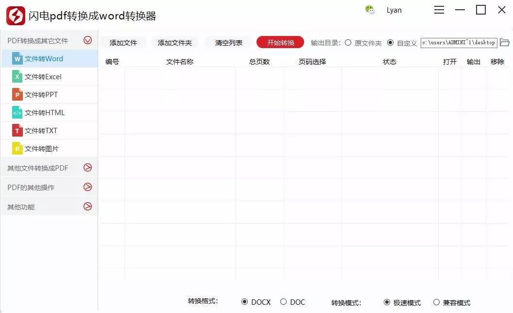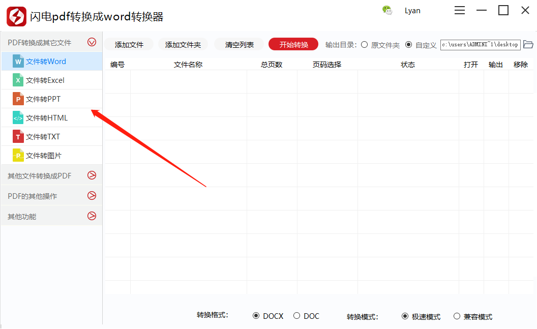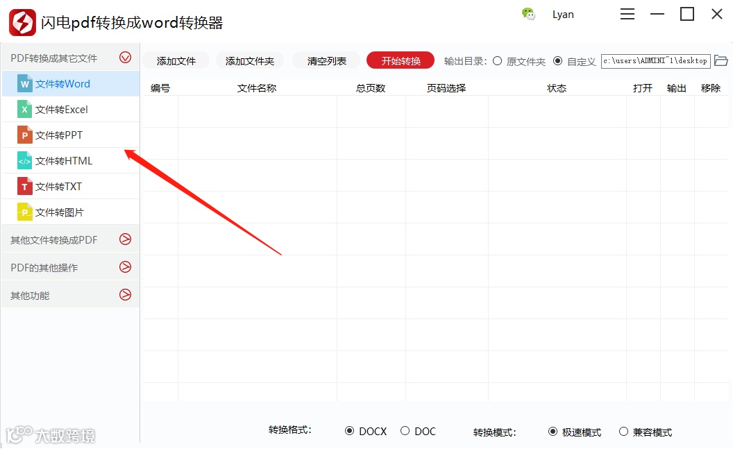 该软件支持PDF转换成Word、Excel、PPT、HTML、TXT、图片。