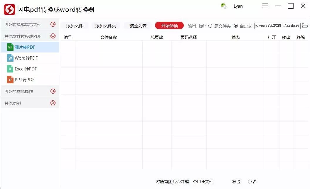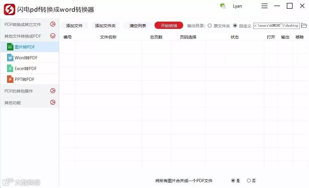 该软件支持Word、Excel、PPT、图片转换成PDF。