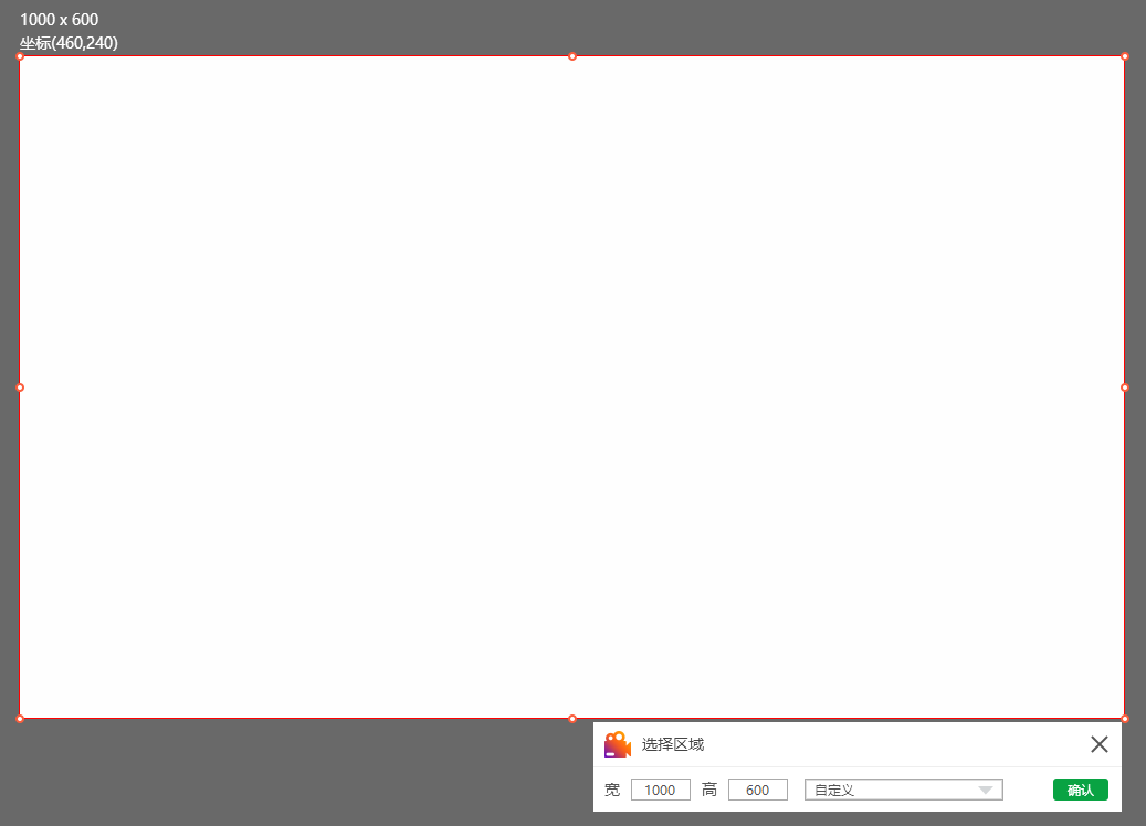 选择自定义区域模式,我们可以选择区域进行录制,在界面右下方可设置录制窗口的宽高,点击“确定”后可开始录制