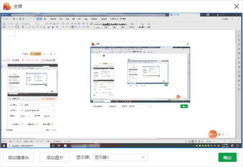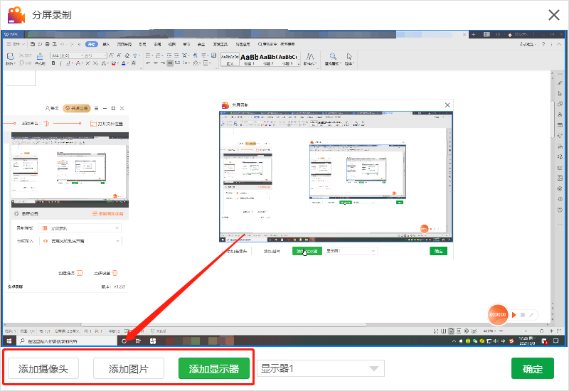 选择分频模式,我们可进行分频录制。如图,可选择添加摄像头、图片、显示器等,点击“确定”后可开始录制
