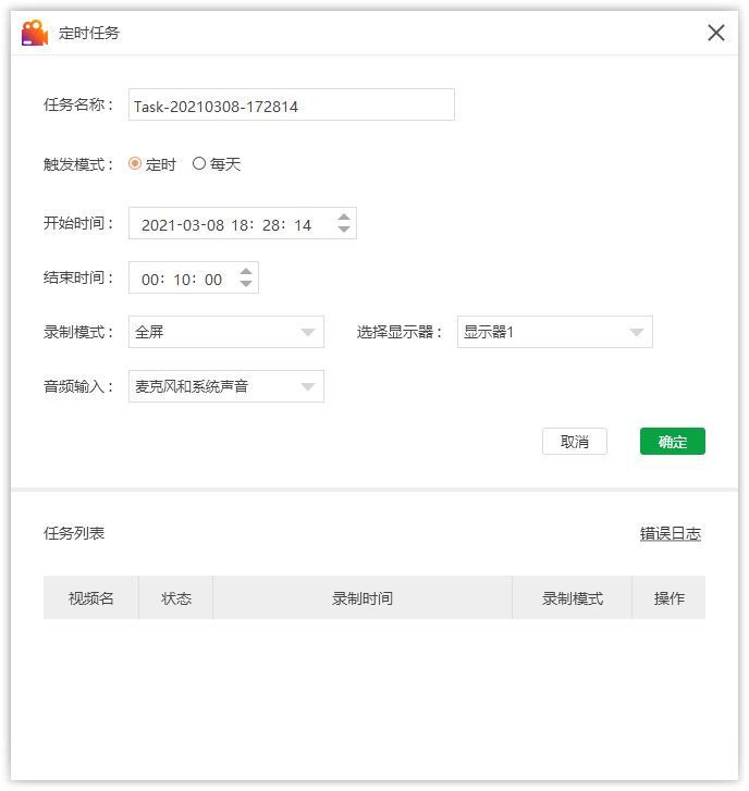 在创建任务中,可选择定时录制,当然,电脑要在开机状态下并且软件在开启(可最小化)的情况下才能实现