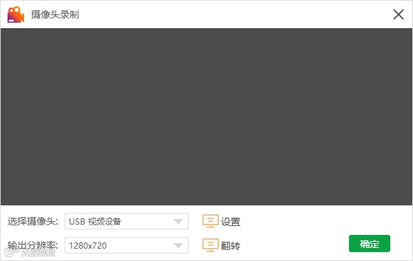 选择摄像头模式,我们可以录制摄像头区域的画面,点击“确定”后可开始录制
