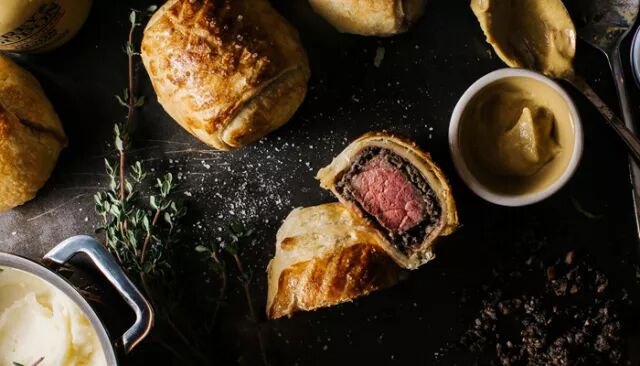 惠灵顿牛肉(Beef Wellington)的具体做法是将鹅肝酱或者鸭肝酱涂抹在菲力牛排上,然后包裹上酥皮进行烘烤。“惠灵顿牛肉”的名称来源于1815年惠灵顿公爵在Waterloo战役中战胜拿破仑。