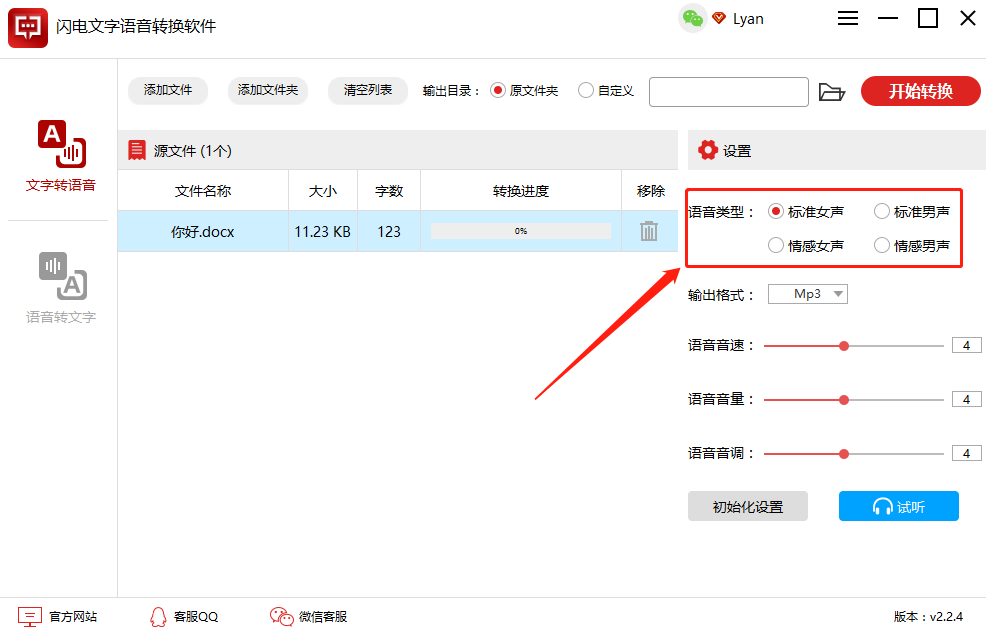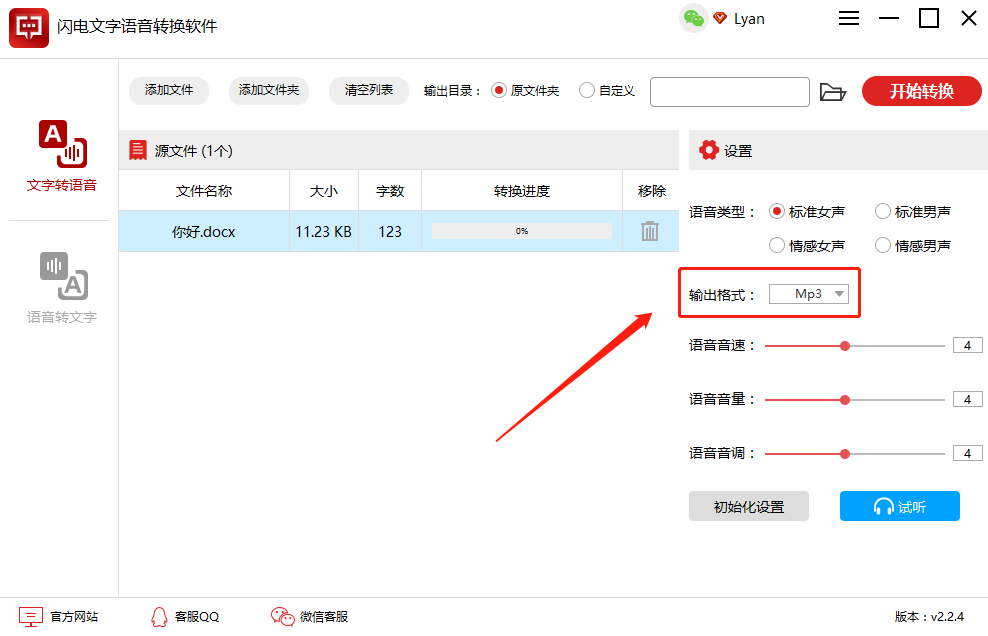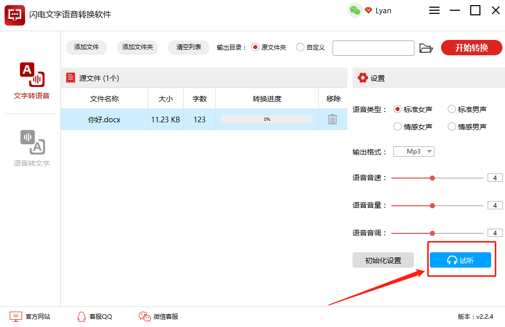 转换之前可以提前试听效果,可以让您听听效果是否理想。