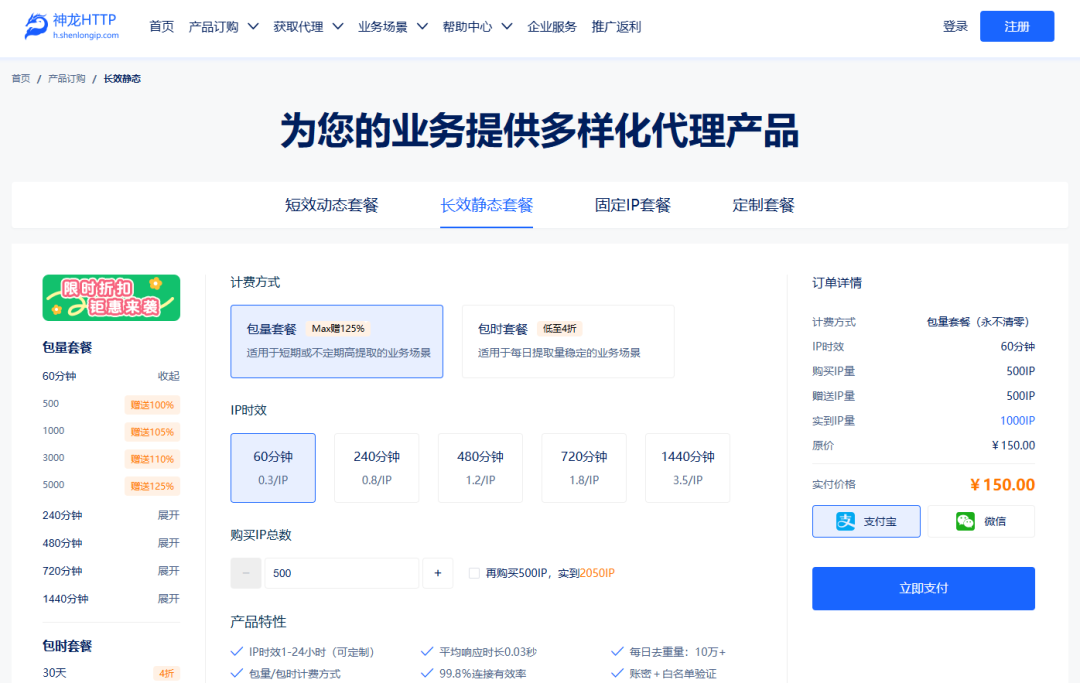 神龙HTTP代理官网最新推出超值套餐限时折扣活动!