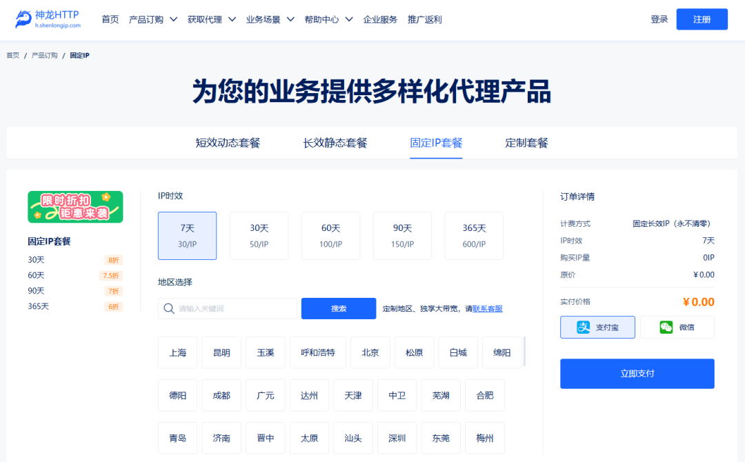 短效动态IP池、长效静态IP池、固定IP池全线优惠,包量3-30分钟低至0.0005元/IP!