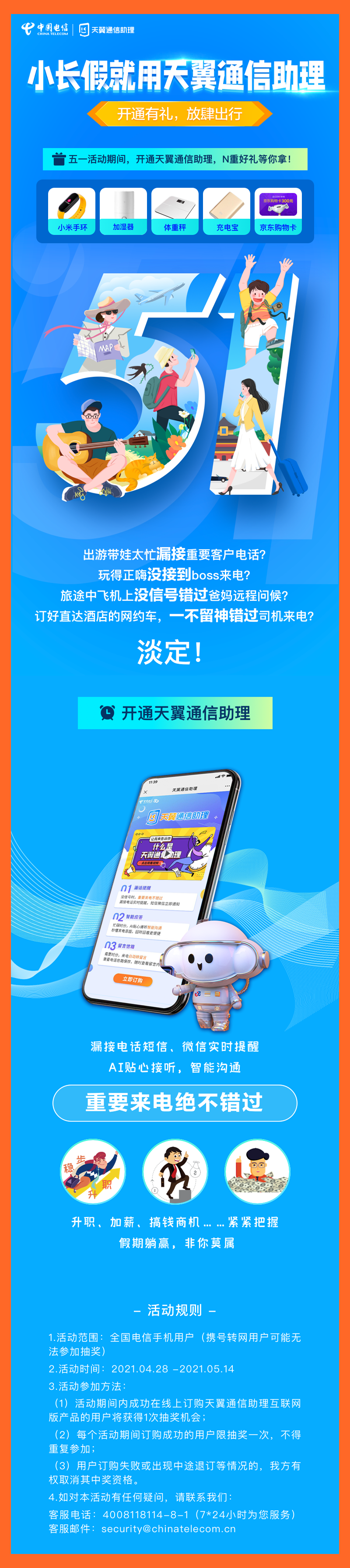 小长假用天翼通信助理|开通有礼,放肆出行!