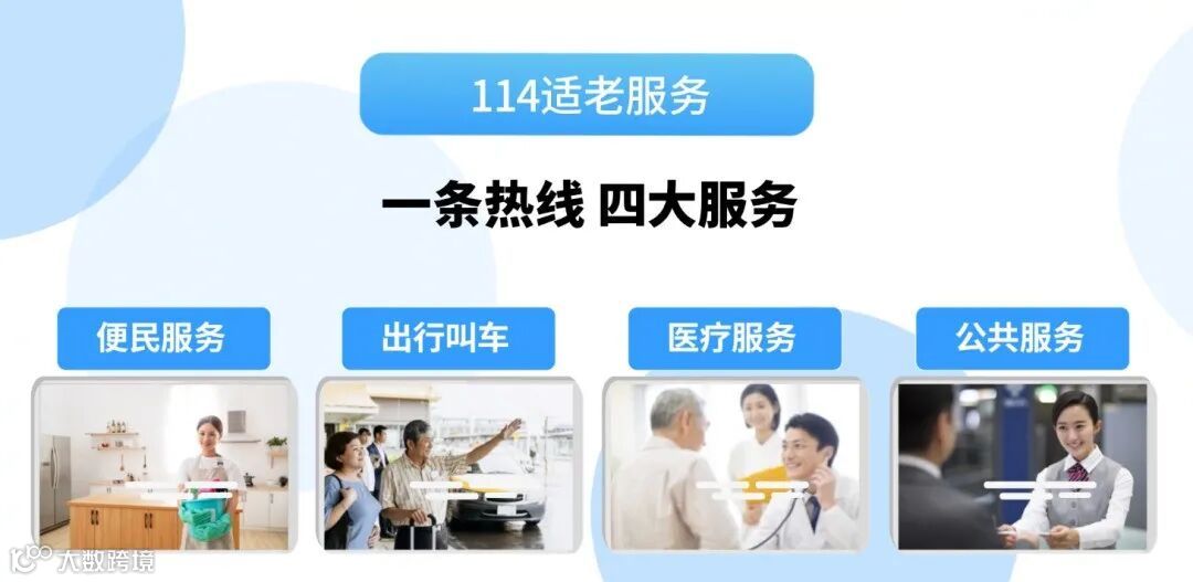 中国电信的114查号台,历史悠久,全国查号坐席达5000个,拥有各地大量政府等公共服务信息。目前,其年均话务访问量3.7亿次,其中很大一部分查询量是涉及老年人相关的如养老、公积金、医院挂号等相关服务。
