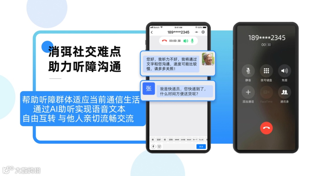 在通话界面,听障用户可以通过编辑文字转化成语音后被对方“听见”,对方的声音也会经由AI助听程序转化成文字后被听障用户“看见”,从而实现真正的无障碍沟通。