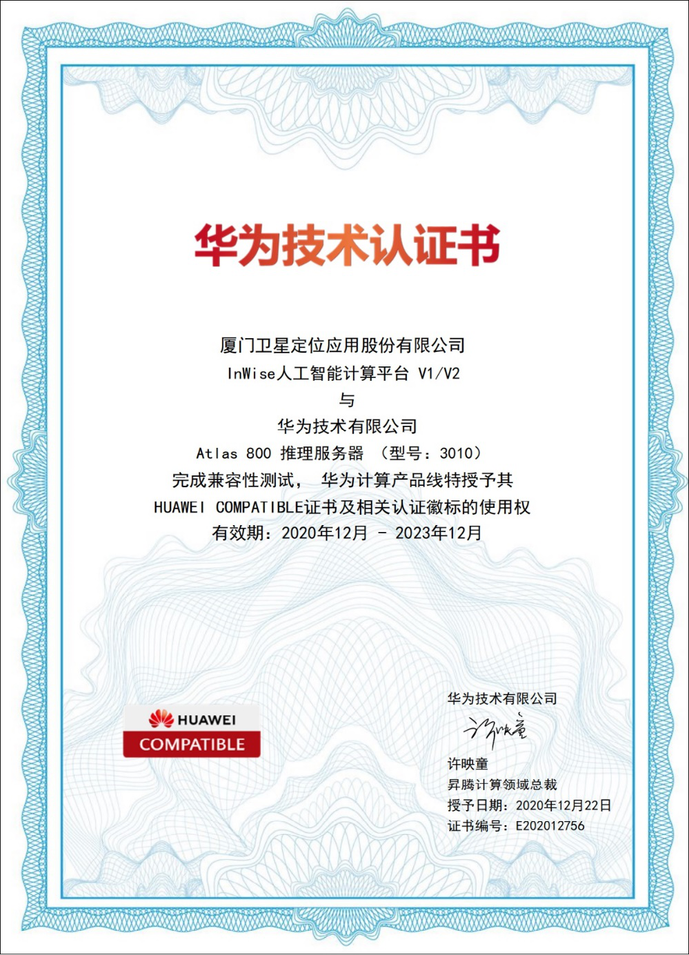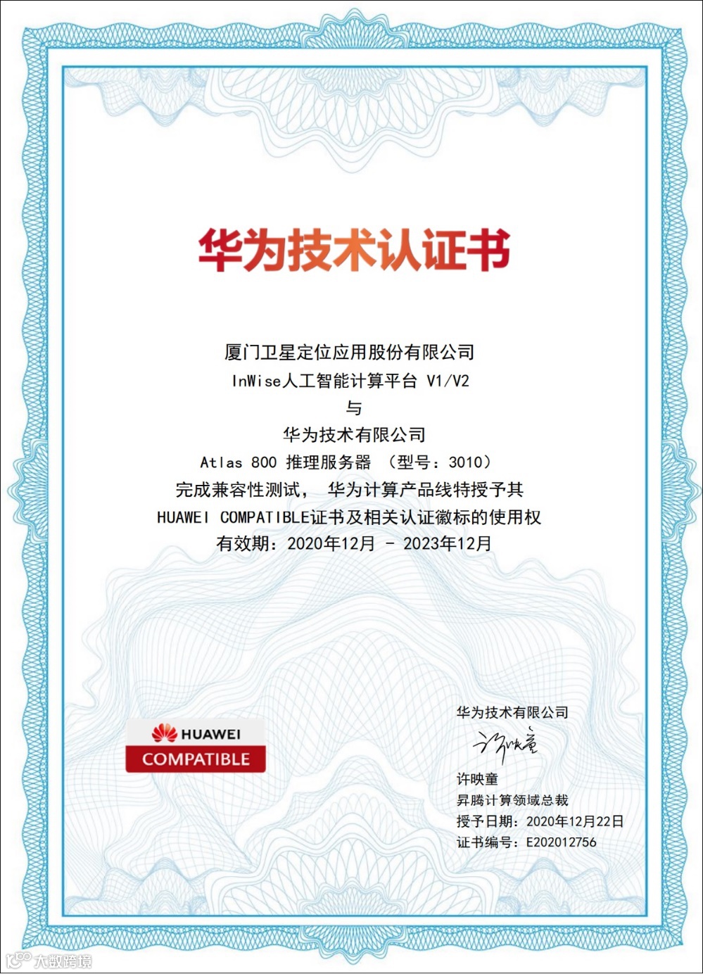 近日,厦门卫星定位自主研发的InWise人工智能平台与华为Atlas 800推理服务器完成兼容性测试与可靠性验证,联合推出针对交通行业典型的昇腾AI应用解决方案,并获得华为技术认证。