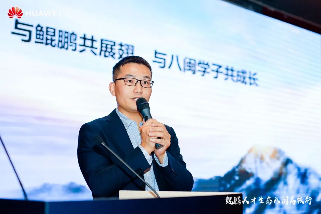 福州大学-数学与计算机科学学院-党委副书记傅茂松出席活动并致辞,福建鲲鹏生态创新中心运营总监宋宗佑、生态总监朱晓彤、昇腾技术经理项崴、鲲鹏赛道执行组组长叶伟华作现场讲解。
