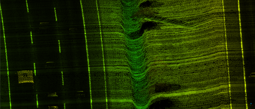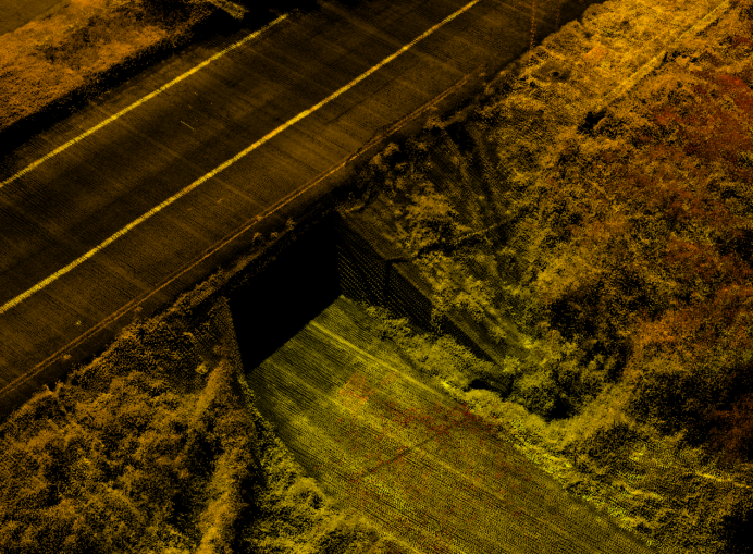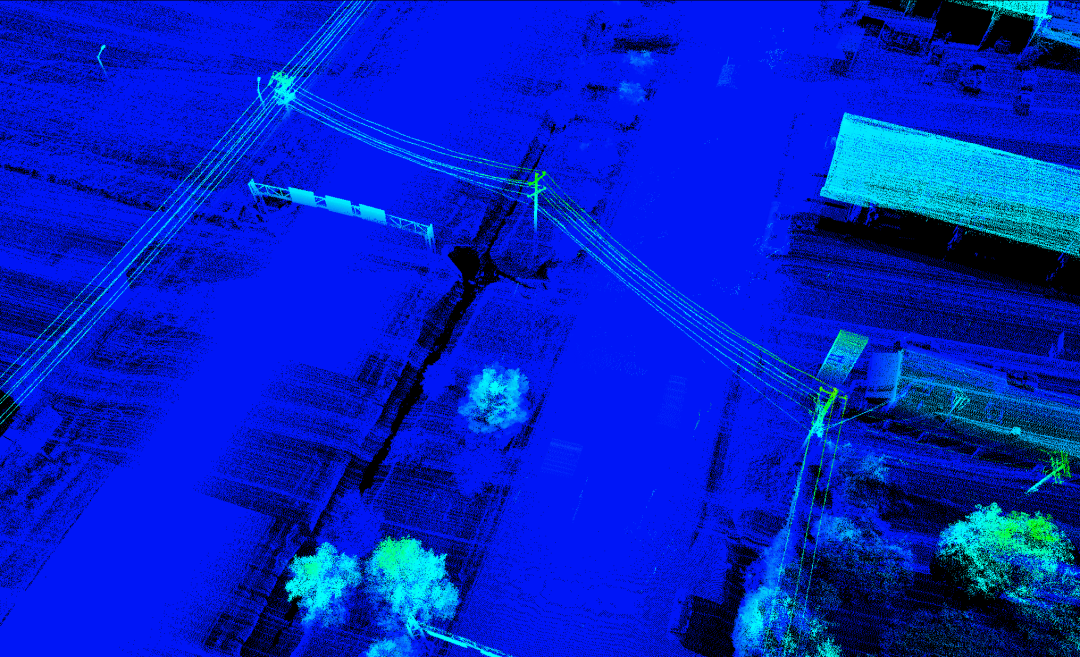 使用BB4搭载AA15飞行一个架次约30min(速度7m/s)完成6Km带状数据采集。AA15机载激光雷达系统操作简单,其独特的性能设计,将测量光束从三个不同的方向连续对地扫描,获取高密度、更完整的地面点云。对比RTK、车载扫描方式,不用上道测量,一次采集即可获取多种传感器数据,实现影像与点云数据融合,提高外业效率,保证人员安全。