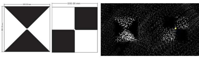 布设标靶是公路改扩建测量很重要的一环,在道路两侧50m内布设标靶,相邻标靶点的间距控制在200m以内,标靶板45°朝向航线,标靶点使用定制标靶板,以保证较好的扫描效果。