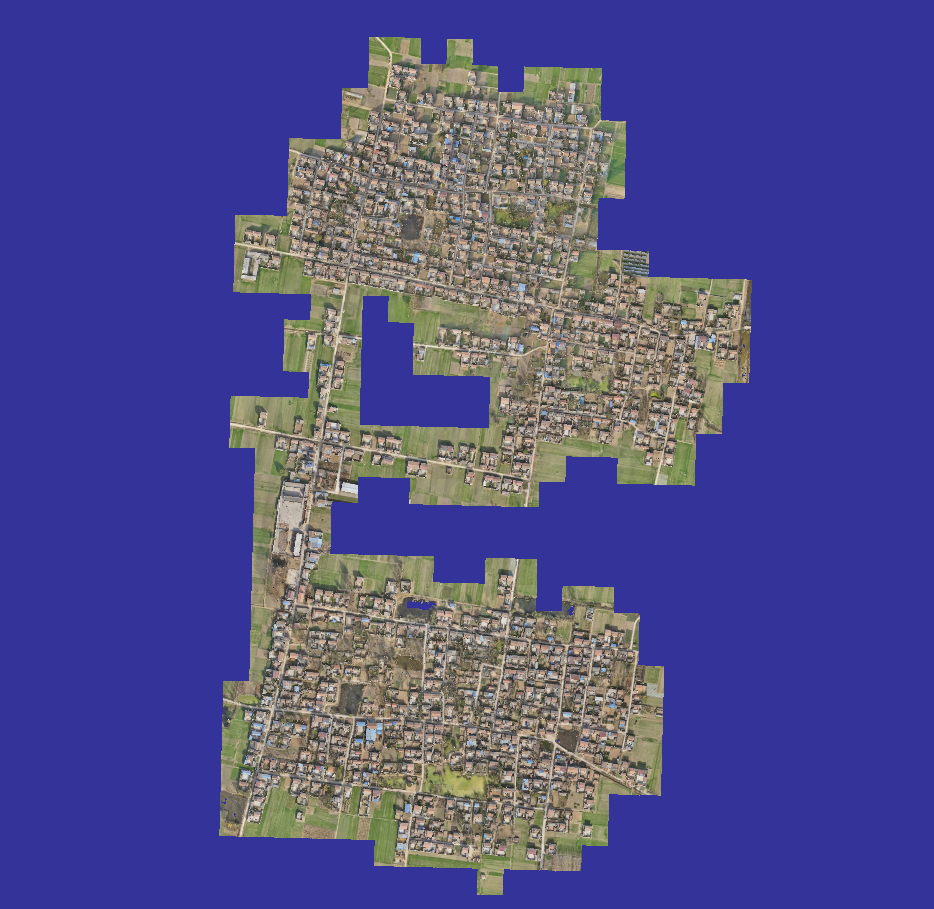 项目区域位于安徽省宿州市萧县某区域,飞行任务分为大小两块村落,测区总面积约1.25km²,测区地势平坦,属典型北部地区平原农村聚居区,就免像控验证而言具有一定代表性。