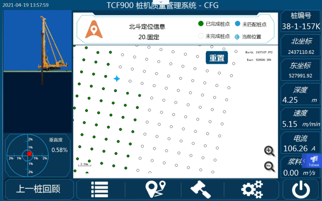 TCF900复合地基施工管理系统极大方便了项目施工管理,能够在保证施工质量的同时提高工作效率,让施工方直观查看每根桩的质量情况并给出施工管理报表。