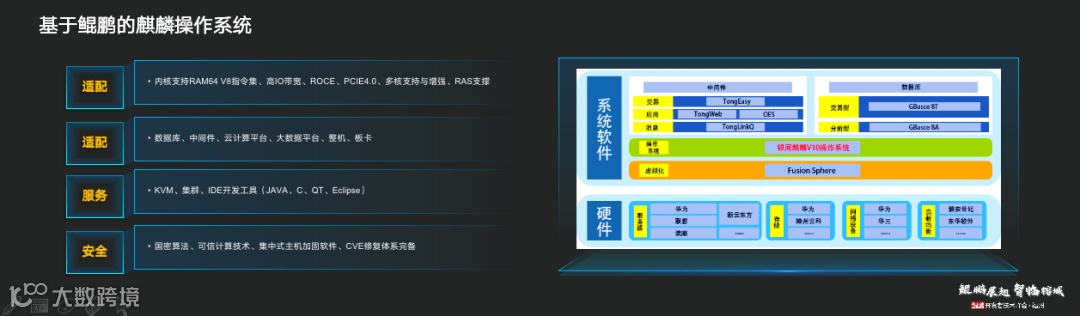 麒麟软件服务器研发部技术总监侯健在《基于鲲鹏平台的麒麟服务器操作系统》演讲中,细致地分享了基于鲲鹏平台打造的麒麟服务器操作系统,今年发布的银河麒麟高级服务器操作系统V10,就已经完成了与鲲鹏架构的适配。
