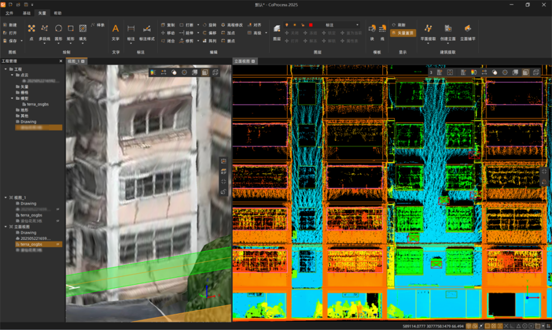 8月初,CoProcess 2025 刚发布,华测导航合作伙伴江西复徕航空科技有限公司的成员就把电话打到了武汉:“我们要给一座上世纪90年代的老旧小区做立面改造测绘。航测+如是RS10把高层建筑扫得滴水不漏,近地面也做到了‘应采尽采’,可内业出图遇到了问题。”