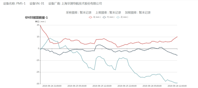 通过从9月23日17:00—9月26日12:00期间的数据分析,可以看出该点在X相对位移值11.9mm,Y方向相对位移值无变化,在Z方向,相对位移下沉34.4mm。