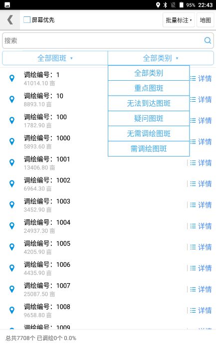 刘工负责的试点分了两个标段,8个村,7000多个图斑数据,如何才能保证所有图斑都进行了调绘?