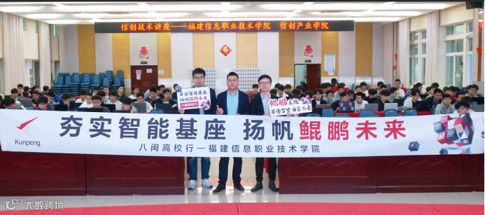 为发展鲲鹏产业生态建设,贯彻落实中央和省委关于开展“不忘初心,牢记使命”主题教育的部署要求,深入实施信息技术创新战略,助力福建省鲲鹏人才培养。11月4日,11月6日,福建鲲鹏生态创新中心分别走进福建信息职业技术学院(龙腰校区)及福建信息职业技术学院(杜园校区)成功举办“夯实智能基座 扬帆鲲鹏未来——八闽高校行”技术赋能活动,为300余名学生深入介绍鲲鹏计算产业发展趋势、鲲鹏平台应用移植的相关知识。