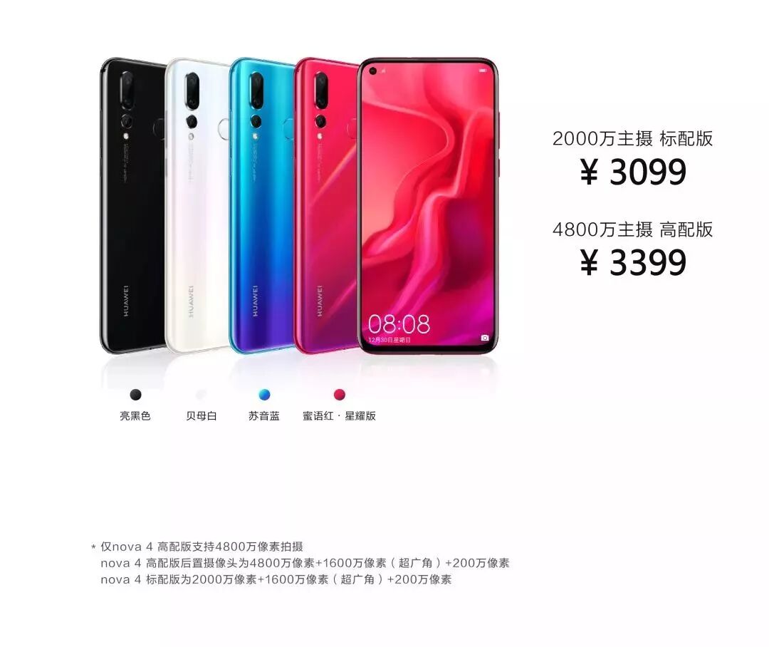 华为nova4高配版搭载4800万超广角三摄