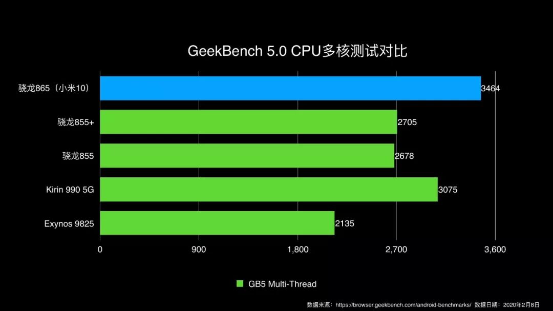 只讨论理论性能,大家对小米10的CPU性能可能还没有太深刻的概念,直接看针对CPU的性能跑分。