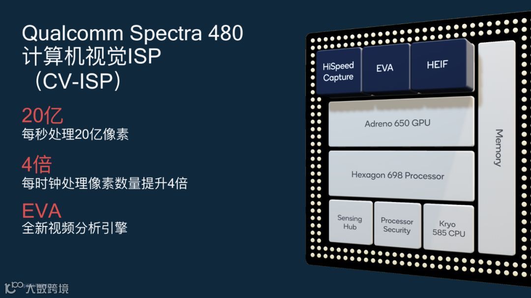 骁龙865全新的Spectra 480,每秒可处理20亿像素,支持4K HDR视频同时进行64MP照片的拍摄。