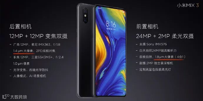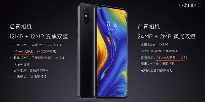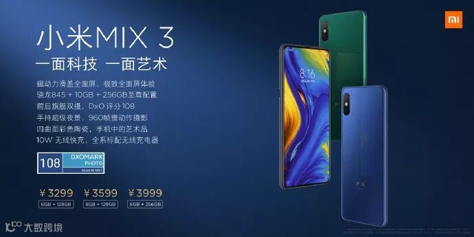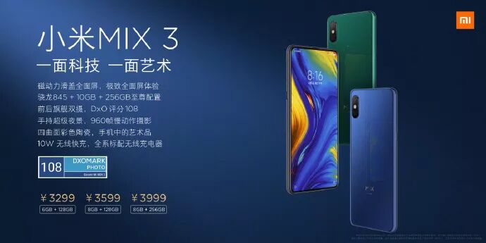 追求极致的全面屏,也决不妥协拍照的体验。#小米MIX3#滑盖全面屏,搭载小米手机迄今最强的后置AI双摄+前置2400万柔光双摄,世界权威评测DxOMark拍照得分达到惊人的108分,位列世界第三。
