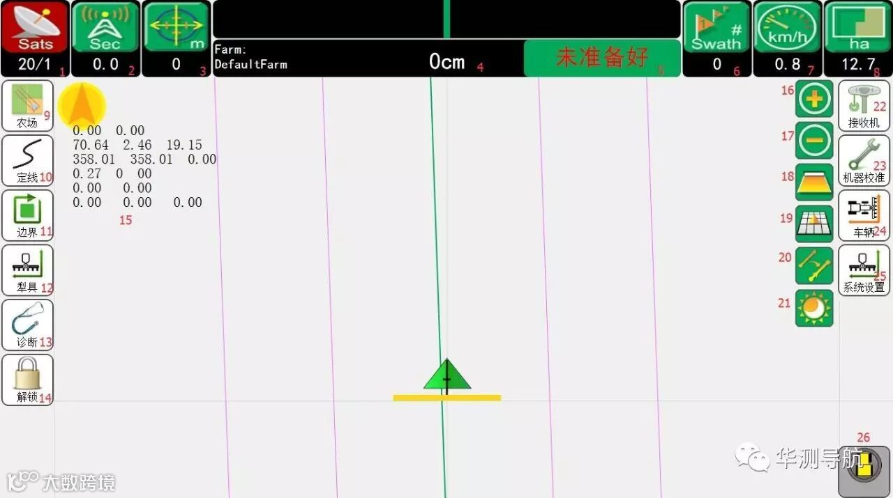 用户只需要在显示屏上点触想设置的车辆以及犁具信息,就不用担心以后更换犁具所带来的烦恼了。 除此之外,小小的软件还能够在你超过工作区域,搜星状态不好,基站信号不稳定的情况下通过声音来提示你,快快找回“最佳状态”。
