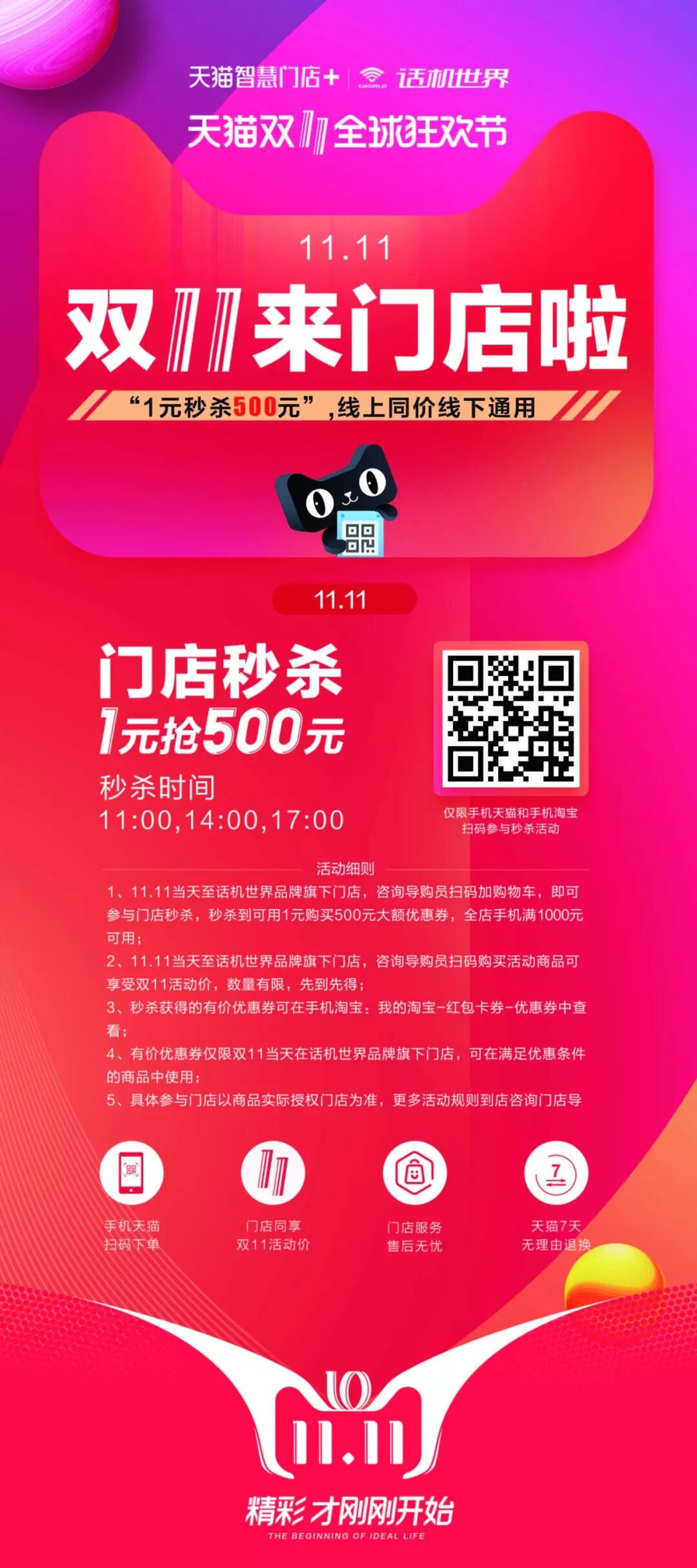 双十一当天到店扫码在天猫线上抢1元券