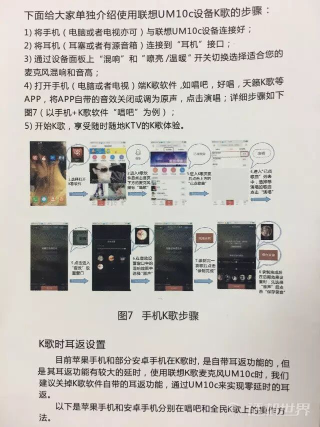 根据说明书上的提示,我们可以有三种尝试:手机K歌、手机直播、客厅K歌,说明书上都有介绍。