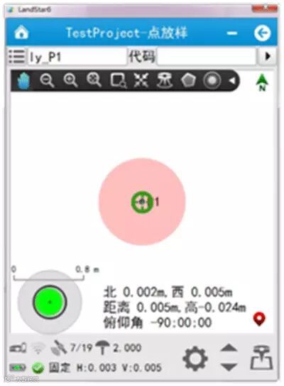 先将样地西南角点的坐标导入LT400N手簿中,在LandStar6.1中使用点测量中的点放样功能,选中要导航到的样地角点,放样该点,手簿就会显示移动站距离目标角点的距离和方位,按照所指示的方向前进,即能成功到达目标角点。