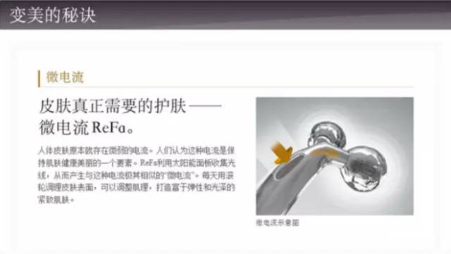通过光电版,陶瓷轮产生和人体生物电同样的微电流,再通过锗和铂金将微电流充分地传导给皮肤细胞,使得皮肤细胞的代谢功能得到恢复,刺激皮肤胶原蛋白的增加。以此即使是短短的十几分钟,也能看到皮肤有明显的提升效果,在持续使用了一两周之后,就能看到瘦脸瘦身、皮肤变得亮丽有弹性、皱纹减少等效果,男女通用!
