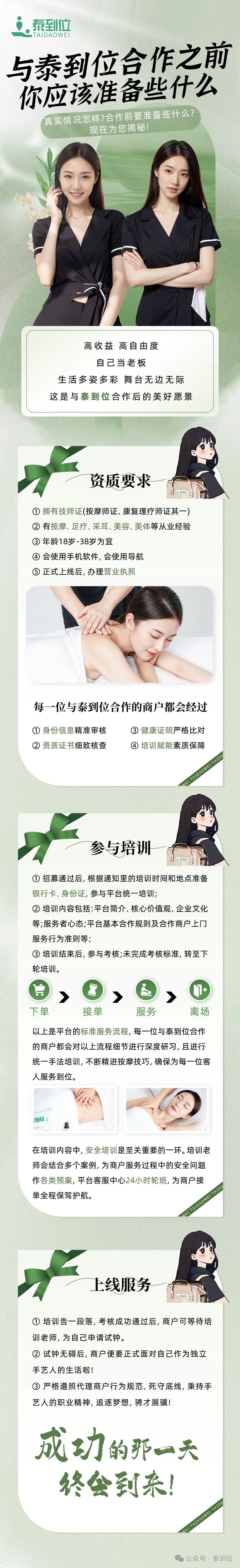 泰到位,四川跃晟网络科技有限公司旗下按摩品牌,为用户提供安全、正规的推拿服务;致力于线下线上一体化,以互联网技术与传统实体门店结合,不断优化推拿按摩体验。