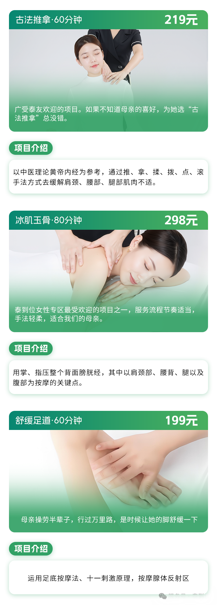 此时此刻,不妨为母亲约一次上门按摩,选择“泰到位”精心打造的按摩项目,让一生操劳的她舒心享受一番。
