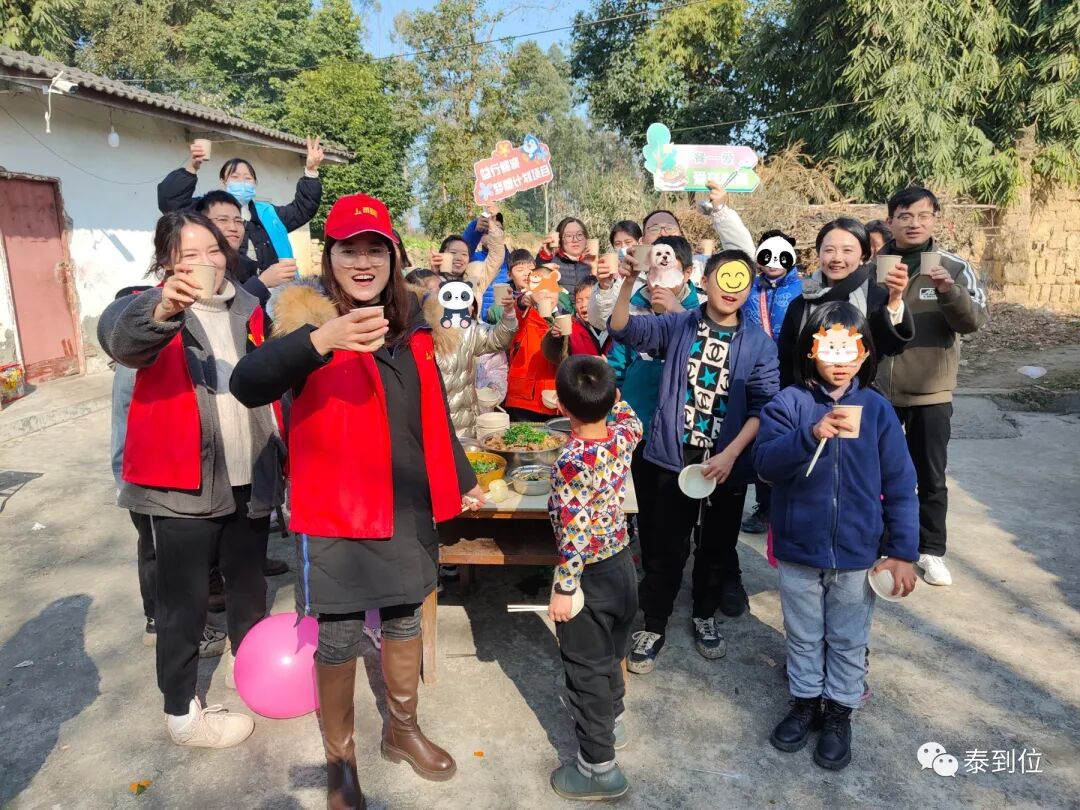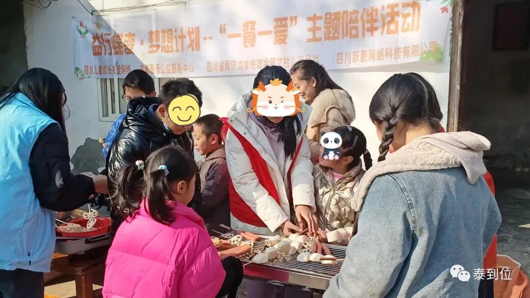 12月24日,“泰到位”公益行再出发,与成都吾乐公益服务中心、四川儿童成长关爱网络等公益同道一起,我们前往四川大邑,在乡野小院中开展露天烧烤会,为孩子们举行益行蝶变·梦想计划——“一餐一爱”主题陪伴活动。