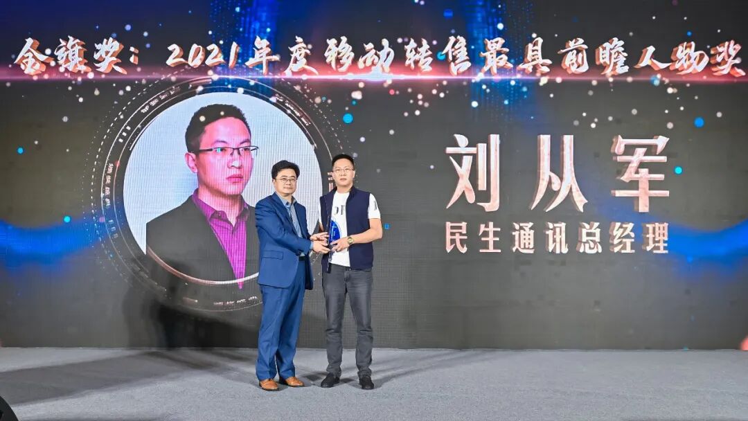 在此次峰会上,民生通讯总经理刘从军先生获得“金旗奖——2021年度移动转售最具前瞻人物奖”;