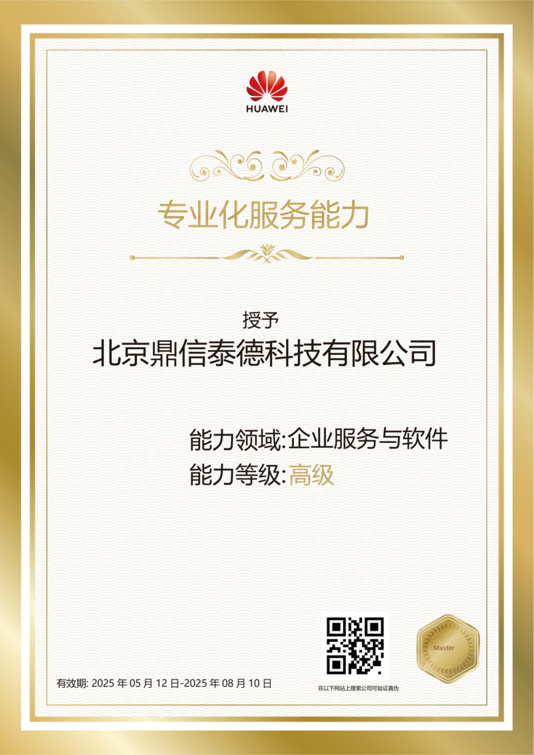 十年深耕,ICT领域的“全能选手” 北京鼎信泰德科技有限公司自2010年成立以来,始终扎根ICT领域,在云计算、大数据、人工智能等技术方向积累深厚,已形成智慧园区、智慧物流、工业互联网等多场景解决方案。作为华为金牌经销商,公司拥有华为云Stack、数通、存储等领域的中级至高级专业服务能力,是华为生态体系中的核心合作伙伴。 |
