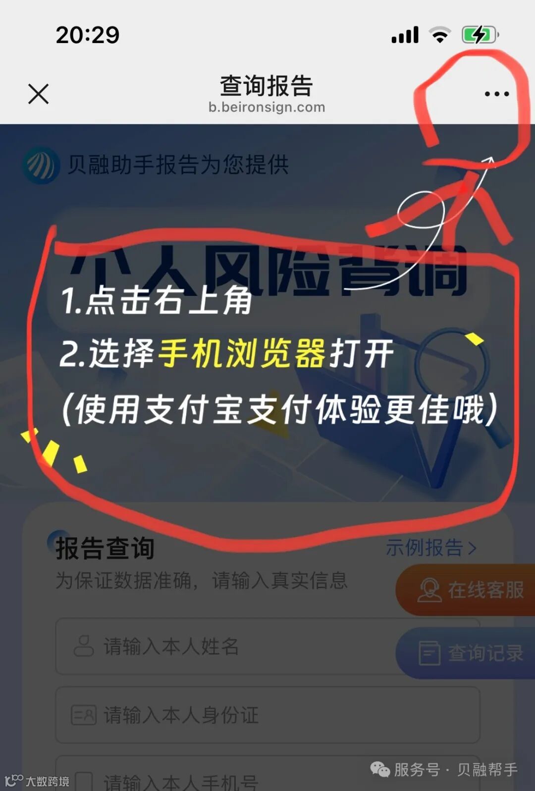 使用贝融助手查询个人大数据报告的过程相对简单。用户只需长按识别贝融助手提供的二维码,即可进入查询流程。(保存图片在相册,使用支付宝扫一扫更方便)