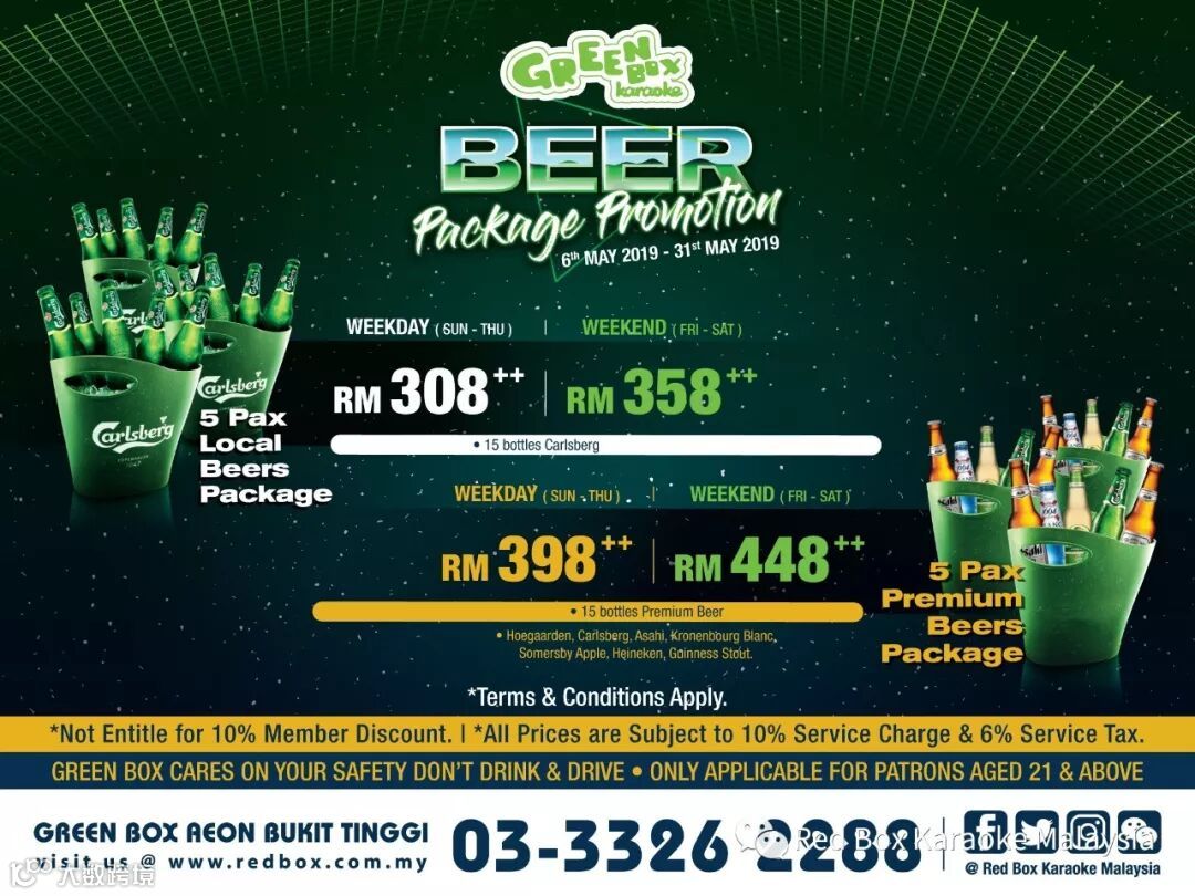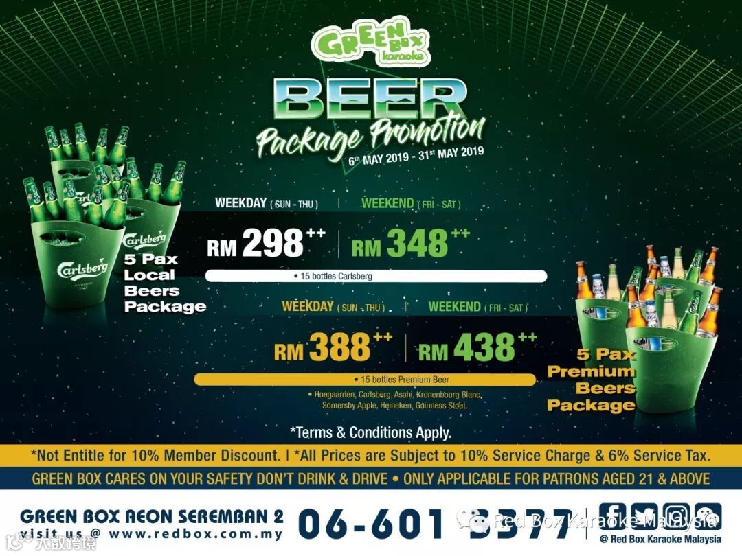 Green Box Aeon Bukit Tinggi 和 Green Box Aeon Seremban 2 分店则是包括15瓶啤酒🍻➕免费5️⃣位人头费哦😍❗️