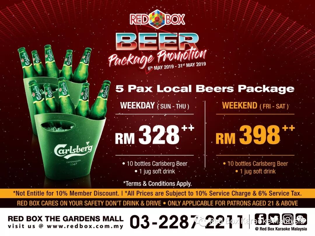 爱喝酒的盆友们有福了❗️❗️来 Red Box Karaoke 除了可以唱K之外,还可以享有特别的啤酒优惠😍❗️🔟瓶啤酒🍻➕1️⃣ Jug汽水🥤➕免费5️⃣位人头费 最低只从RM208 起🔥🔥